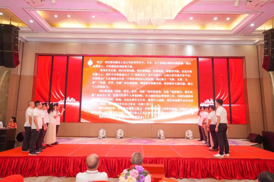 会长夏威宣读了《关于建立母校大湾区兄弟校友会定期合作交流机制倡议书》。根据《倡议书》,广深佛莞四地校友会将本着“互联、互帮、互惠”“共建、共享、共赢”的理念,设立专门联络小组,每半年至少举办一次线下合作交流活动,由各校友会轮流举办或联合举办。母校人事处处长付泽武、社会资源处处长王俊与广深佛莞四地校友会长(代表),共同点亮大湾区校友会定期合作交流机制启动仪式,台下响起了热烈的掌声。